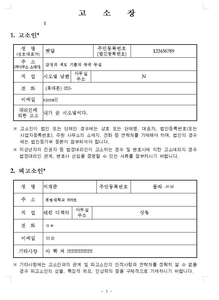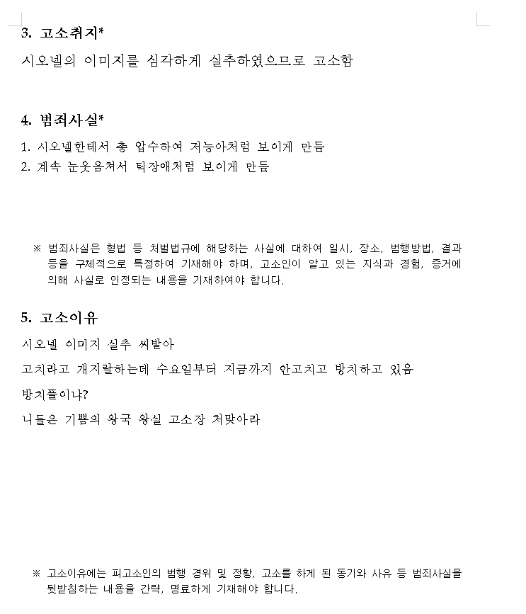 고소장에 다 적진 않았지만, 총이 없어서 시오넬의 손가락이 마치 특정 사상을 연상케 하고 있고,