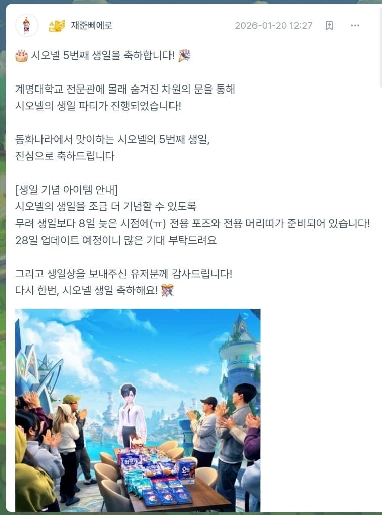 | 분명히 시오넬 생일 템 준비중이라고 했잖아요... (0) | 2026.01.20 |